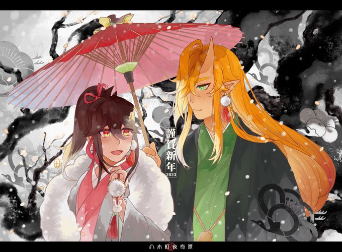 大変遅くなりましたが明けましておめでとうございます🎍 昨年は9月ごろから絵が描けていませんでしたが、ツイートを見てくださったりコメントくださったりとても嬉しかったです! 本年もどうぞよろしくお願いします🙇♀️✨ #年賀状イラスト2023 #HappyNewYear2023