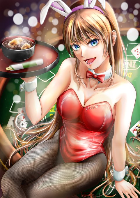 #うさぎ年なのでリプもらったキャラにバニー衣装着せる リースで描かせていただきました💚🐰 #お宝新年 #HappyNewYear2023 🎍 #卯年 🐰 #年賀絵 ローソンファミマ : FUQJG3YLHW 有効期限 : 2023/01/19 17時頃