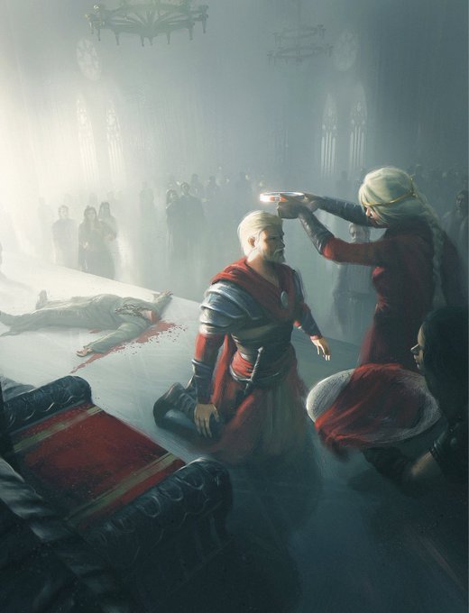 King Maegor, the Cruel, crowned by his mother Queen Visenya Targaryen . #HouseOfTheDragonEp10 #HouseOfTheDragonHBO #HouseTargaryen #RhaenyraTargaryen #asoiaf #HOTDFinale #HBOMax #painting #ArtoftheRogue
