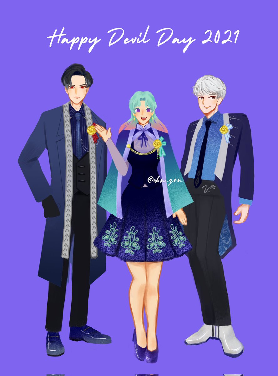 Happy Devil Day 2021!!! 🥳🎉🎉🎉 It's late but the event is still on going so I'm joining this 💕💕💕 Shea and Solomon with matching colors ヾ(。>﹏<。)ノ゙✧*。 #obeyme #obeymesolomon #HDD2021 #obeymemc #art #ArtistOnTwitter twitter.com/rikkuchan11/st…