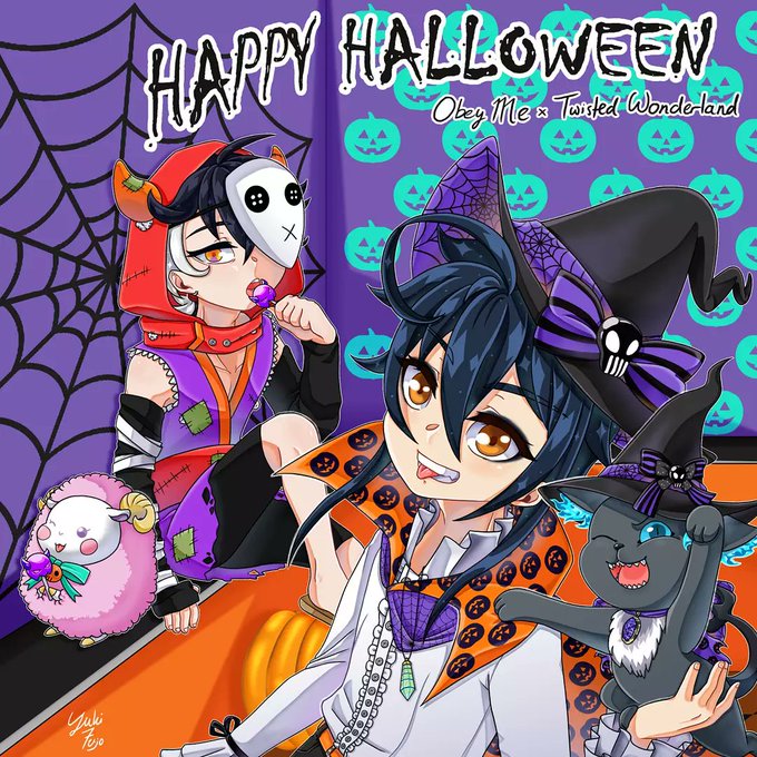 🎃🎃Happy Late Halloween 🎃🎃 Featured my Twisted Wonderland M!OC, Yuu, and Grim. And my Obey Me M!MC, Kimito, and MC-chan~!! #twistedwonderland #twstファンアート #twstoc #obeyme #obeymemc #art #digitalpainting #Halloween #halloween2021