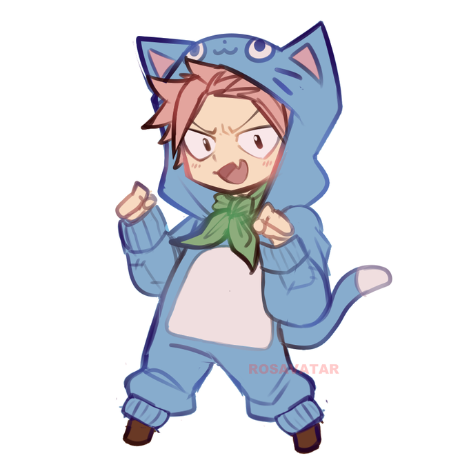 inktober day 12: dragon slayer in exceed onsie catboy natsu reporting for duty o7 [#natsudragneel #happy #fairytail #inktober #inktober2022 #hiromashima #fanart]