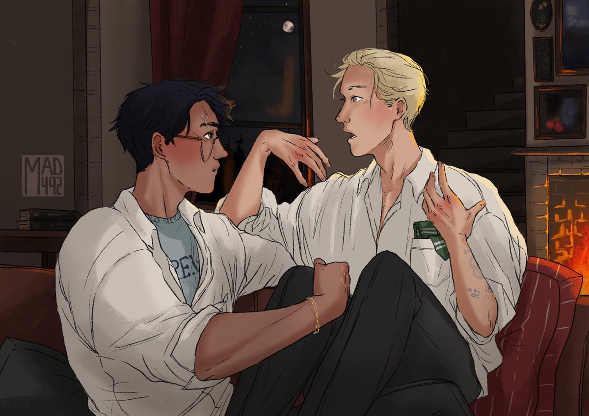 They forgot they are “secretly” dating I love the au where all returning 8th years use the same common room #drarry #harrypotter #DracoMalfoy #harryxdraco #harrypotterfanart #fanart #ArtistOnTwitter