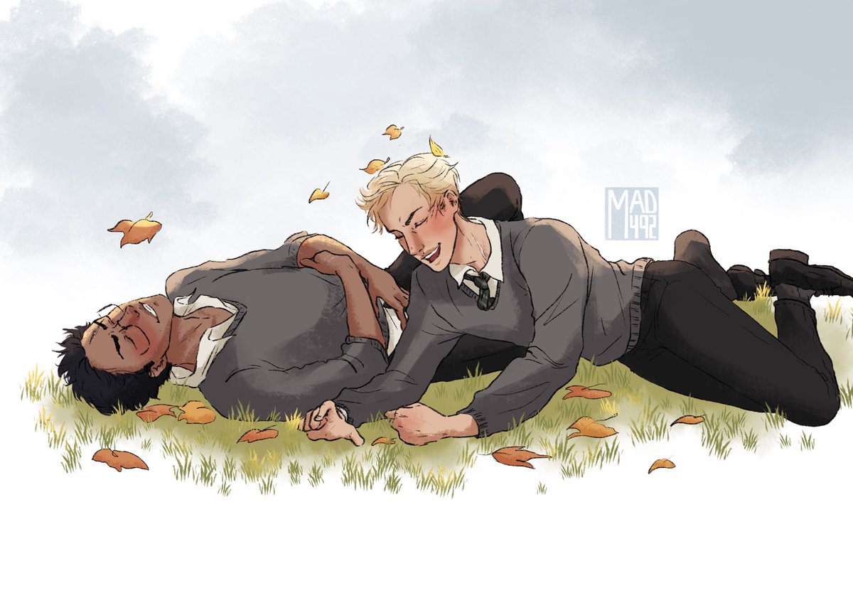 In the middle of falli̶n̶g̶ #drarry #HarryPotter #harrypotterfanart #DracoMalfoy #art #drawing #artistsontwitter