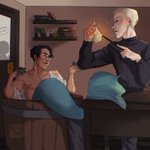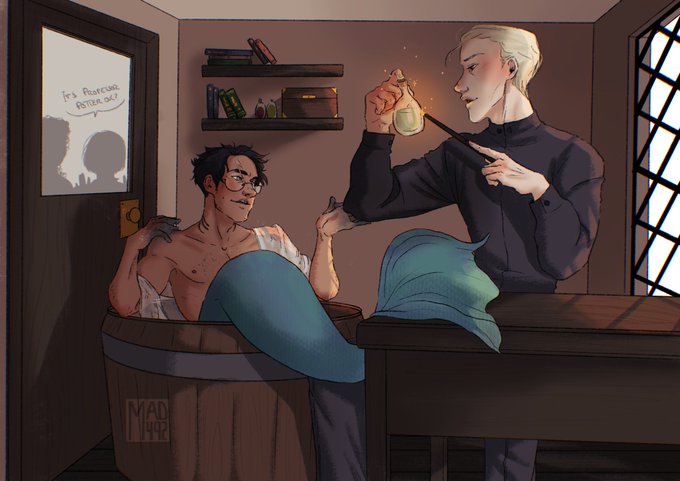 “This wouldn’t happen if you were more careful during your classes” “C’mon Draco…” In which Professor Potter get turned into a merman during class, but luckily Professor Malfoy can help #drarry #fanart #harrypotter #harrypotterfanart #dracomalfoy #harryxdraco #mermay #mermay2022