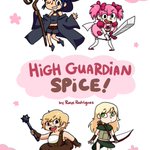 Humble offerings from my #HighGuardianSpice archives, the art from the end credits! These drawings were super fun to do, I did the character art and the amazing @james_batrez did the BG's and color!