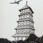 This is the Bell Tower (previously known as the Tin Tower) of Ecruteak City. Ho-Oh used to perch on the roof. You can summon Ho-Oh and have a battle atop the roof. #inktober #inktober2021 #inktoberday13 #day13roof #roof #hooh #pokemon #pokémon #ecruteakcity #johto #drawing