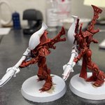 #Hobbystreak day 133. The eldar are finally getting another color painted on other than red! Day 134 was my stream/#mermay project, Conan the mermanian/Lionel the Catfish ruler/Merman Jonny Bravo (take your pick!)