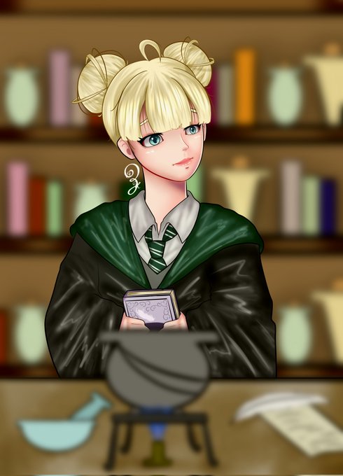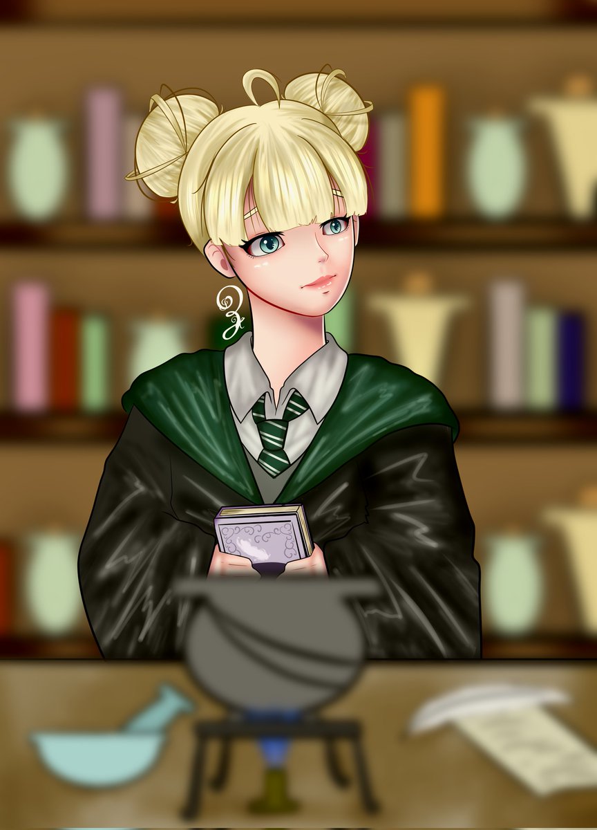 Cordelia is ready for Potion Class 🧪 and of course She is Slytherin 🐍 #slytherin #hogwarts #harrypotter #originalcharacter #oc #digitalart #illustration #artidn #zonakaryaid