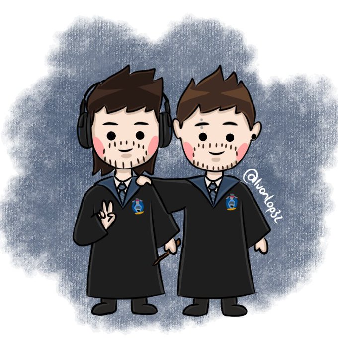 Dibujo rápido de @auronplay y @DonReborn2 con el uniforme de Ravenclaw ya que comparten casa jsjs 💙 #Rebornlive #FanartsForReborn #AuronPlay #auron #hogwarts