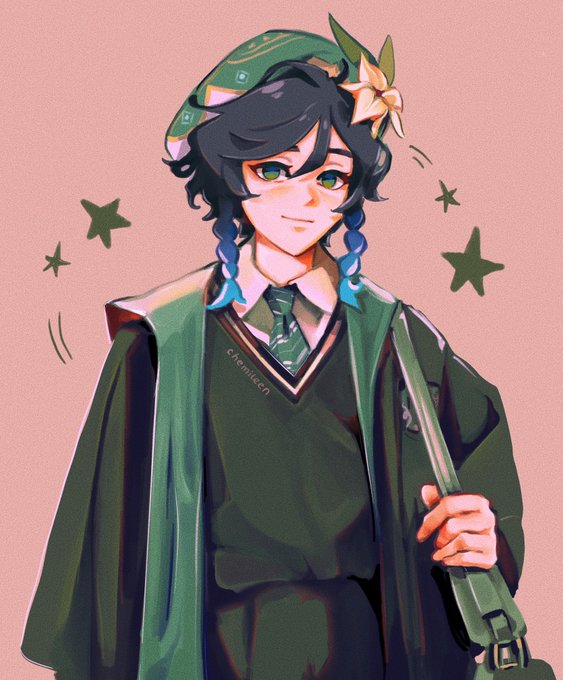 Venti + Slytherin 🔮 . RT+like really appreciated 🥺🫶 #venti #barbatos #anemo #Slytherin #Hogwarts #genshinimpact #fanart #DONOTREPOST⚠️ Last- Aether 😘