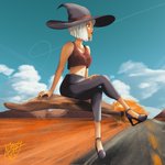 Day 13: Wander Witch Topic: Fantasy -Okay, back to my usual Innocence! Time to catch up with #jeppytober and finish what I started! -Enjoy! -Jeppy #digitalart #witch #openroad #desert #hottie #art #inktober2021