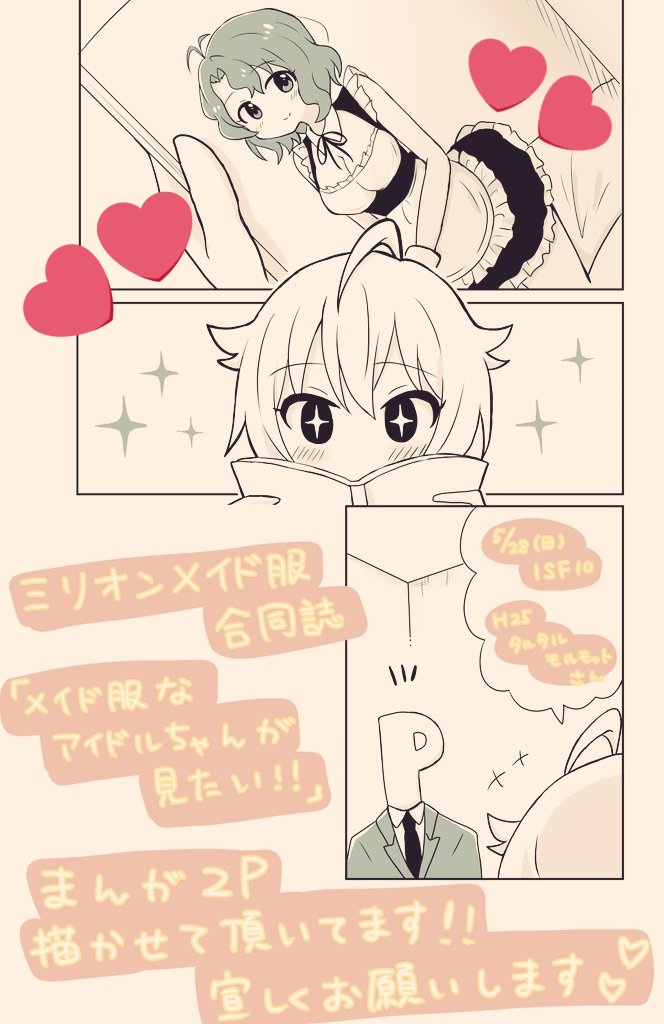 本日開催の #ISF10 で頒布される、めるくまさん主催の #ミリオンメイド服合同 『メイド服なアイドルちゃんが見たい!!』 に漫画2Pで参加させて頂きました💛 頒布ブースは「H-25 / タルタルモルモット 」さんです 🌻 どうぞ宜しくお願い致します~🙇☕✨ twitter.com/well_witchA/st…