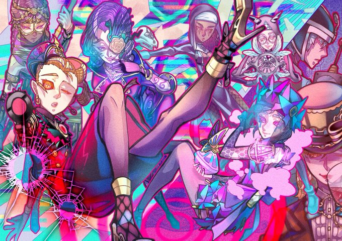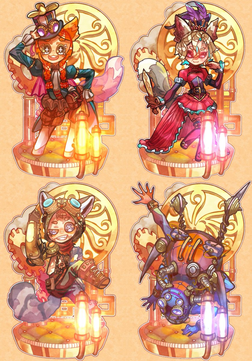 ◆玩具職人/アニー・レスター🧸 :ペーパーウィング ◆血の女王/マリー🪞:女大公 ◆傭兵/ナワーブ・サベダー🤕:砲兵 ◆結魂者/ヴィオレッタ:再造者 第五人格×鎌田光司コラボ衣装ビネット風4種全員完成したので改めて並べてみました!皆大好きです💕 #第五人格イラスト #IdentityVfanart