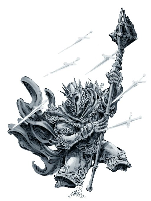 Day 17 Sir Gideon Ofnir #eldenring #inktober #ink #soulstober #darksouls #bloodborne #sekiro #marker #illustration