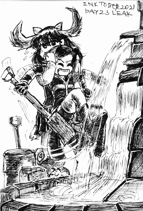 #inktober2021 #inktober2020 #けものフレンズ DAY23 LEAK ビーバーは水が流れていると、それを止めようとする習性があると。 ヨロビちゃんそれ水漏れと全然チャウよ