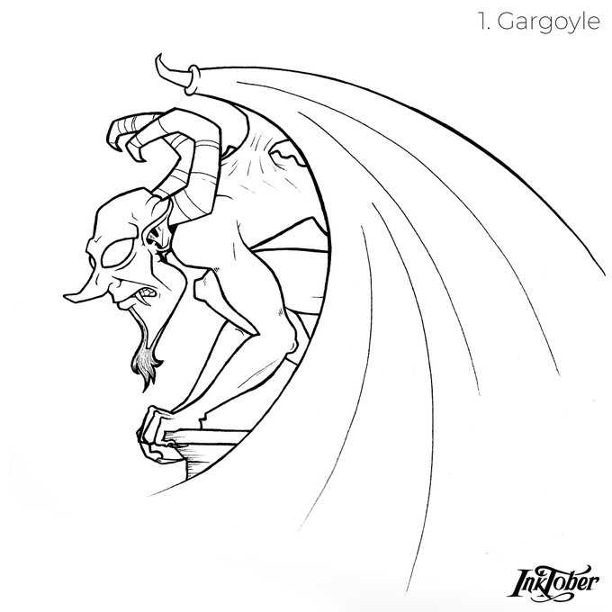Inktober 2022 - 01. Gargoyle Tarda, mas não falha. achei as sombras meio zuadas mas o conceito legal. #Inktober #Inktober2022 #inktober2022day1 #inktober2021Gargoyle #inktoberGargoyle #inktoberday1