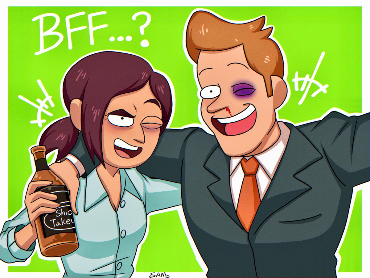 Just a girlboss and her malewife What can I say? The blorbos are shipable, and I’m all for that 💗 #insidejobfanart #insidejob #saveinsidejob #ReaganRidley #bretthand #breagan