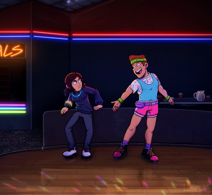 I bet Brett would pressure Reagan to go to one of those epic run down 80s rollerblading rinks. I had a lot of fun drawing this! #insidejob #insidejobfanart