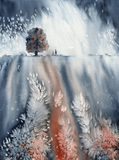 Check out this watercolor - November walk - inspired by a walk on a dull November day when suddenly a snowstorm started and transformed us into walking snowmen! karen-kaspar.pixels.com/featured/novem… #landscape #landscapepainting #watercolor #ShopEarly #BuyIntoArt #art #painting #interior #blue