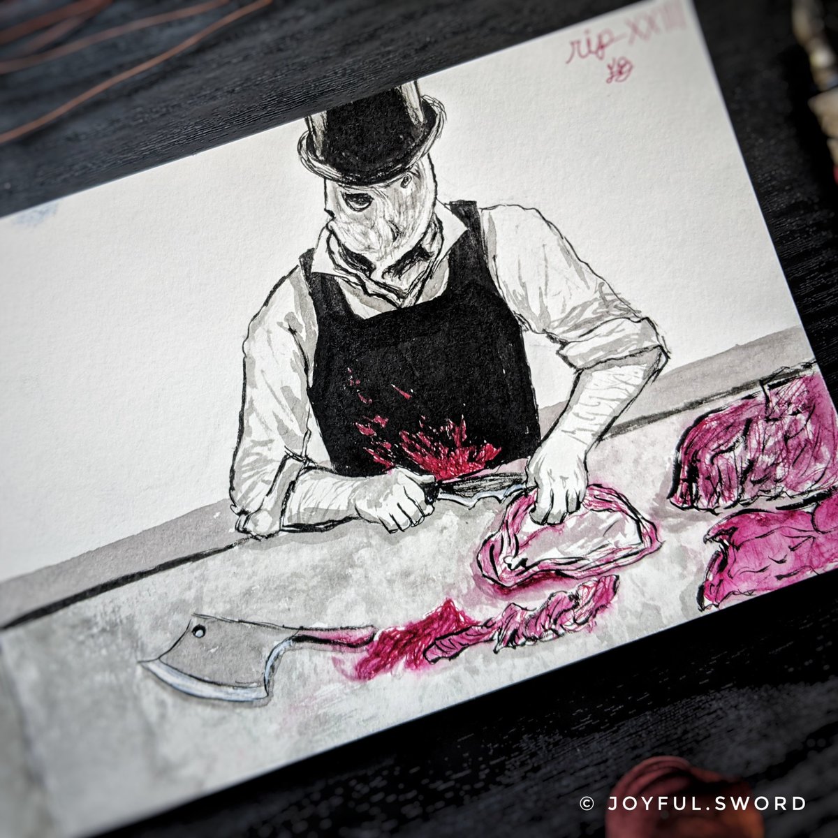 @inktober prompt: Rip Jack the Ripper gets rehabilitated as a butcher. 🐷 I don't think Jacob is fully convinced. #jacktheripper #butcherlife #butchershop #butcherknife #assassinscreed #acfanart #ipevo #inktober #inktober2020 #inktoberday23 @jakeparker @ipevoinc @ipevo