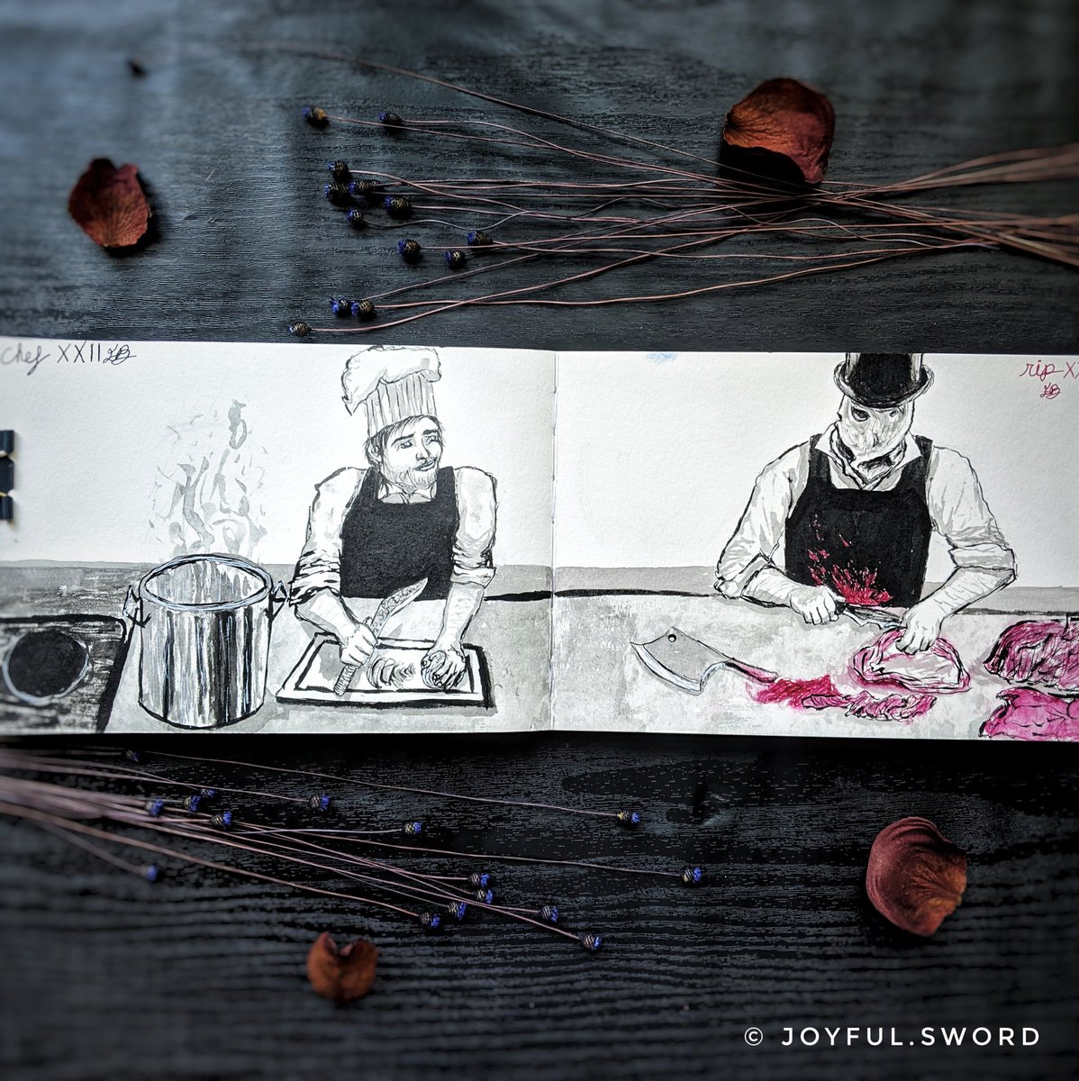 #Jacobfrye and #jacktheripper working in the kitchen. #inktober2020 #Inktober #inktoberday22 #inktoberday23 #ipevo @inktober @ipevo