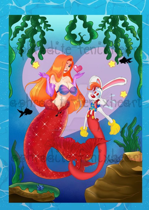 El #mermay de hoy, es sobre la glamurosa Jessica y su marido Roger, espero que os guste. Podeis seguirme por mis otras redes sociales: aphroditefenixheart.carrd.co Dedicada con mucho cariño a @kusodibujo ❤️❤️❤️ #mermaid #jessicarabbit "Yo no soy mala... Es que me han dibujado así"