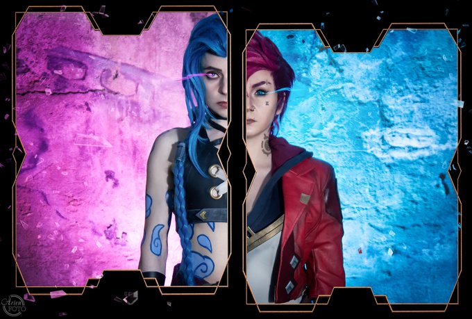 inspired by the Jettet fanart of Vi an Jinx me as Jinx and @ShappiWorkshop as VI photo by Arien edited by me #jinx #jinxcosplay #vi #vicosplay #arcane #LeagueOfLegends #jinxandvi #cosplay