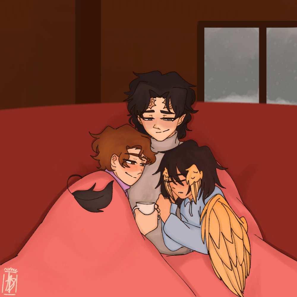 Clingy cuddles for warmth mmmmm ☕💜💛💙💕 #karlnapityweek (day 5) #fiancetwt #karlnapity #quackityfanart #sapnapfanart #karljacobsfanart