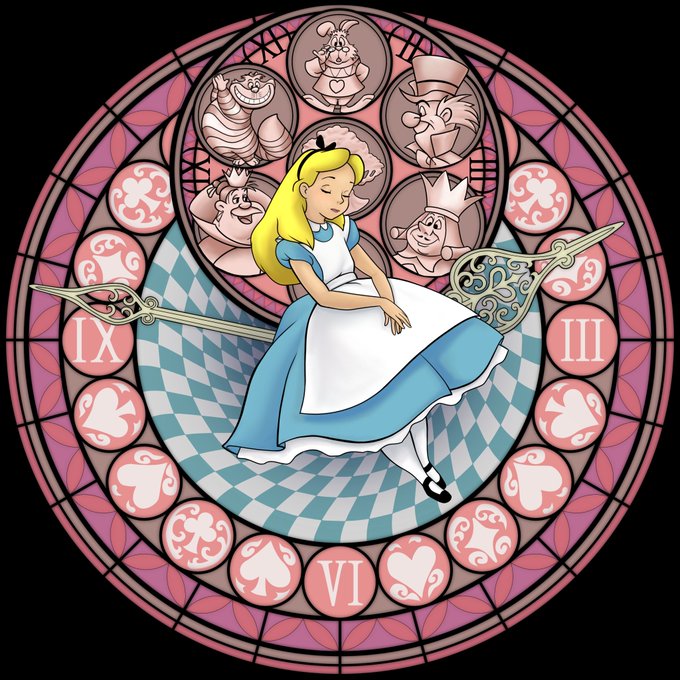 Restoration of Alice Stained Glass from the unused files of Kingdom Hearts (2001). Second image is the original unused texture upscaled. #kingdomhearts #kh #restoration #art #fanart