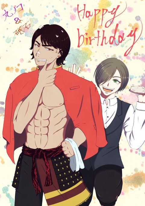 楽器組お誕生日おめでとう🎉🍾㊗️🎁🎂💝 なんだかんだで仲良し(なんでしょ!?)の2人が大好きです!!! #丸ノコ誕生祭2022 #砥石誕生祭2022 #楽器組誕生祭2022 #KOUGU維新ファンアート