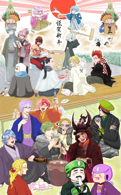 新年明けましておめでとうございます✨🎍🥳🐰🎍✨ ……という事で、年末に元旦絵チャ合作させていただきました!! 総勢20名の親方様合作の年賀状を皆様にお届けいたします🙇♀️✨ #KOUGU維新ファンアート