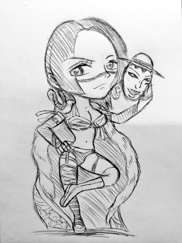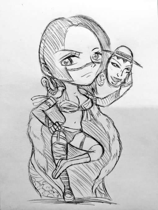 カイリ×ビビ これに至っては、そのままですね…💧 『ワンピース風に描いたカイリだろ』と言われても、反論できましぇん💦(笑) 色塗りたい😭 6th #Inktober2019 #ONEPIECE #WWE #ビビ #KairiSane