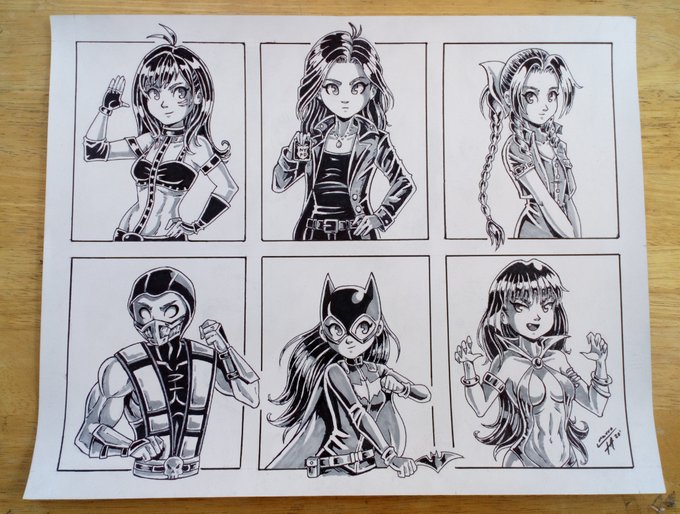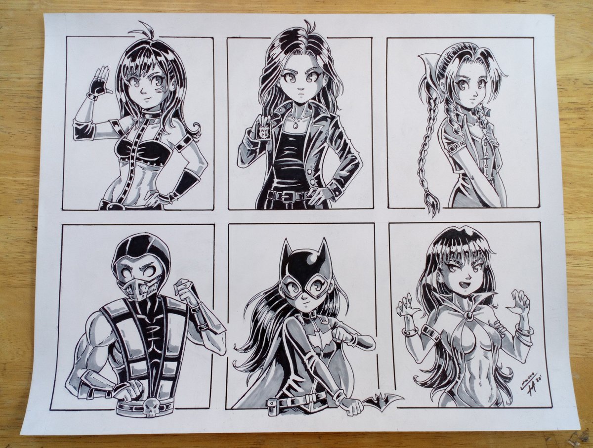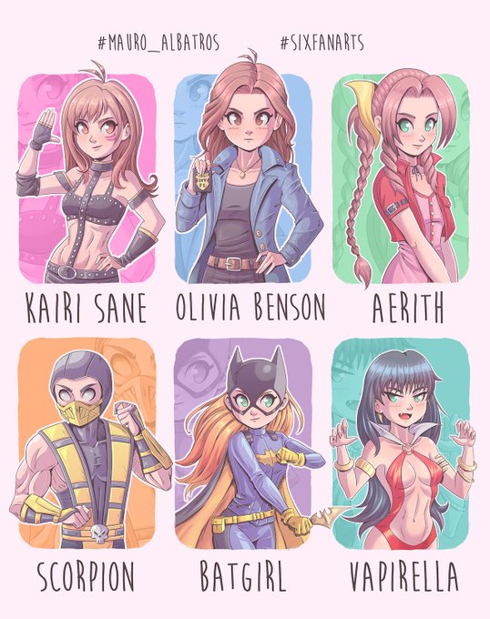 My #SixFanarts this challenge was very fun! here is the Inked version, Characters: #KairiSane #OliviaBenson #Aerith #Scorpion #Batgirl and #Vampirella #FanArtFriday #Fanart #SixFanartsChallenge #Mauro_Albatros #ArtWork