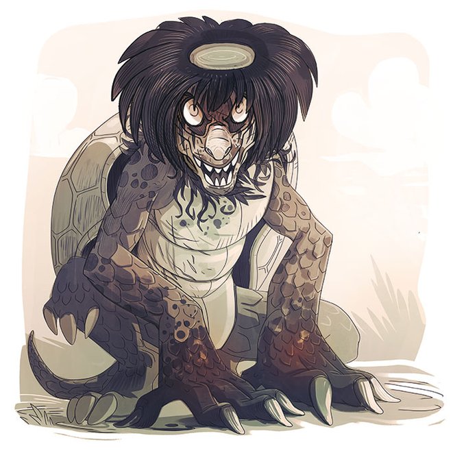 Dia 17, los Kappas asechando en los ríos, chicos recuerden proteger su shirikodama. @LeyendasPodcast #TintubreLegendario2022 #leyendaslegendarias #escarabajo #kappa #yokai #Inktober #dibujo
