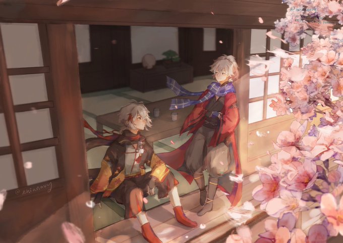 KazuTomo quality content || @p0calyps said I should draw them, but I didnt wanna give Tomo a face we dont know, so I did this instead || #原神 #GenshinImpact #GenshinImpactFanart #kazuha #kujousara #tomo #TomoKazu #KazuTomo #art #digitalart #csp