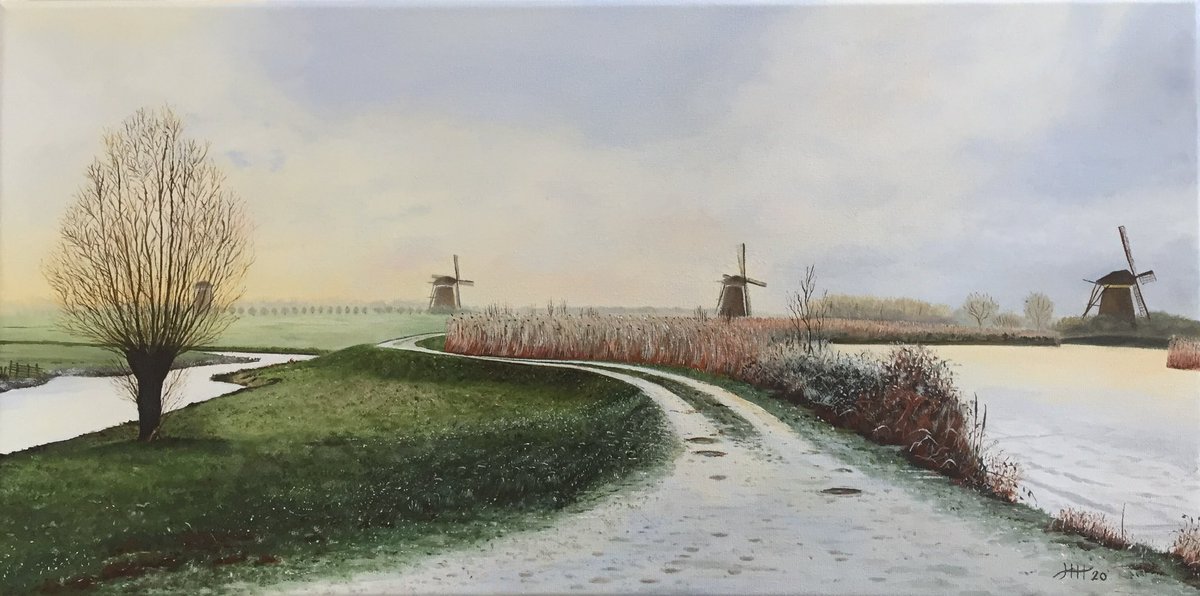 Painted about two years ago. Kinderdijk mills in the winter. #mills #Kinderdijk #winter #Unesco #oilpainting #art #artistontwitter