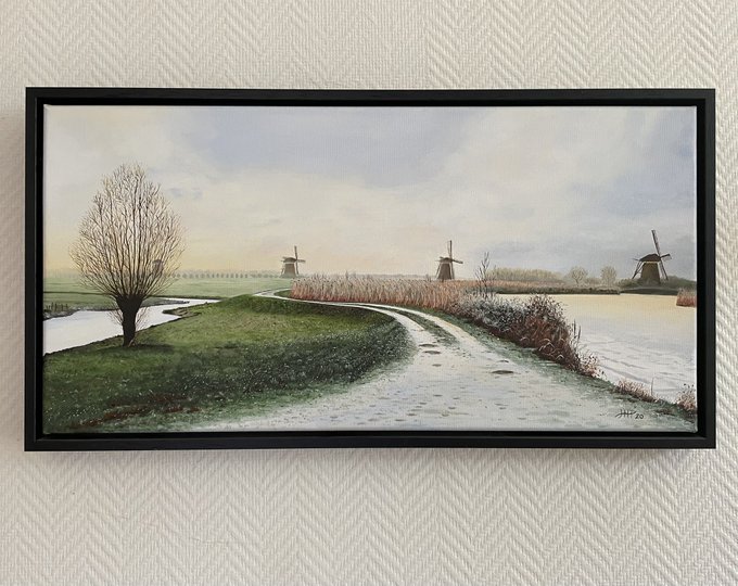 Framed 😊 Kinderdijk mills in the winter 🎨 #Unesco #Kinderdijk #mills #oilpainting #art #artistontwitter