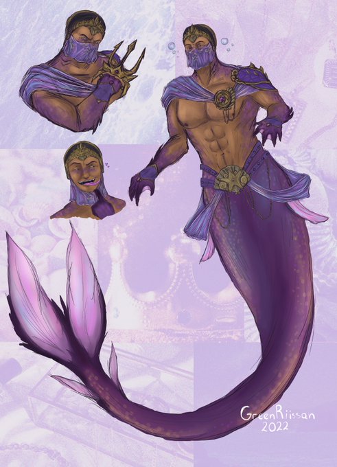 Uhh, mermay is almost over so I wanted to draw merman Rain again, but this time I decided to design a new fishy look for him lol +bonus mermaid Kitana sketch for simps #mortalkombat #rain #kitana #art #myart #digital #digitalart #illustration #clipstudio #mermay #characterdesign