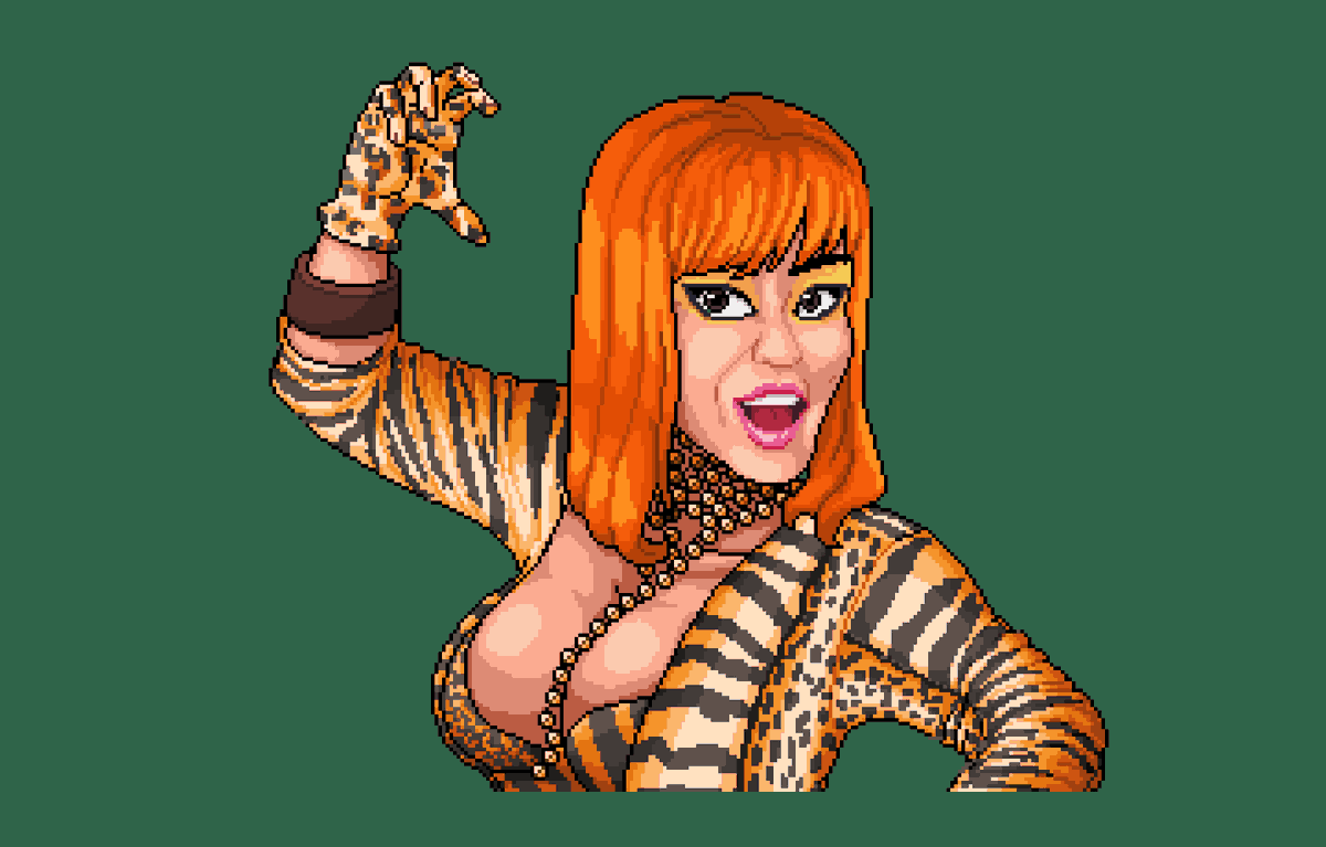 So... I didn't know what #kitsch was until I looked it up, and it was used to describe #TigresadelOriente who is a peruvian singer ...and I can definitely see why, lol. But here she is :D #PixelArt #Art #ドット絵 #pyxelEdit #pixel_dailies @Pixel_Dailies