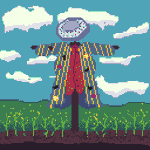 @Pixel_Dailies #Pixel_dailies #pixelart An #armour #storefront in which the employee looks kinda wierd like an #insect in disguise, so you better not touch his #kitsch statue or he'll be mad at you.