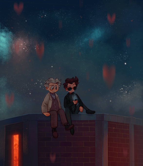 This scene from the title sequence is just very cute :D Meant to be in a different style, but I got tired, pwhaha :D --- #GoodOmens #GoodOmens2 #GoodOmensAziraphale #GoodOmensFanart #IneffableHusbands #GoodOmensCrowley #Aziraphale #Crowley #DigitalArt #Krita