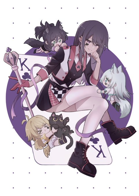 在今天壓線畫完圖圖 4人組香拉!! <3 (有畫每個人的撲克牌形象) 後續會慢慢開始發-都有參賽(## #MizukiArt #SekiArt #Kspaint #Hibikipaint