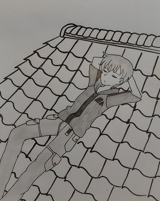 Inktober day 13: Roof Cat boy cat nap #Inktober #Inktober2021 #inktober2021day13 #Inktoberday13 #Kyosohma #Fruitsbasket #Inktoberroof