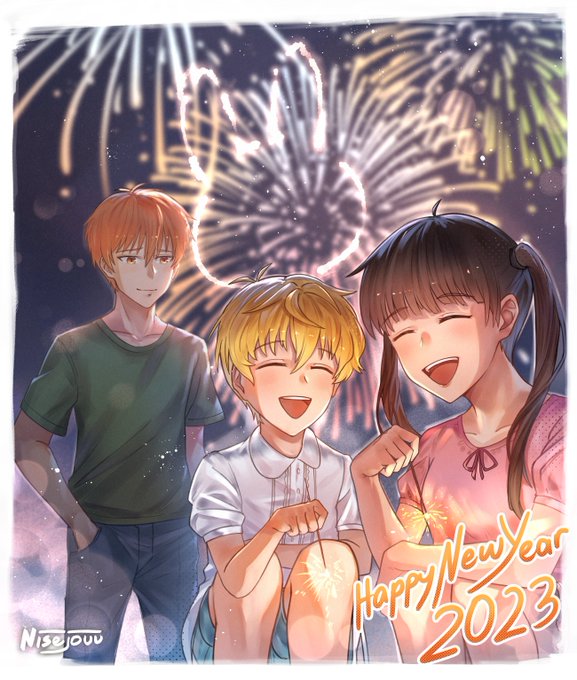 A very Happy New Year to all!!! Hope you have a lucky year of the rabbit blessed by Momiji!! 明けましておめでとうございます🐰🐱🍙✨ #FruitsBasket #Fruba #Kyoru #Momiji #フルバ #フルーツバスケット #HappyNewYear