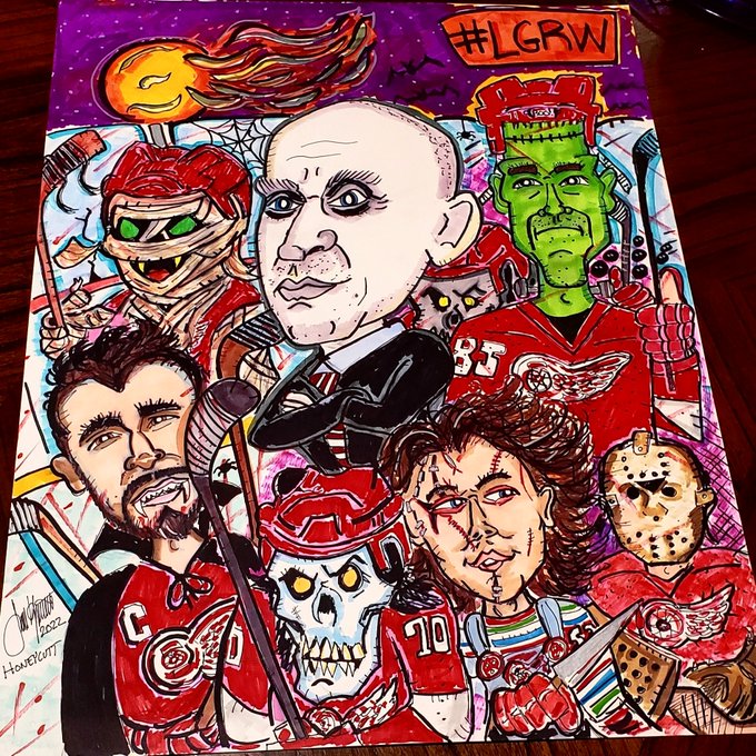 #LGRW #HalloweenWeekend @DetroitRedWings #TrickorTreat #DetroitRedWings 🐙🎃🏒🥅🍂👻 GO WINGS! #FanArt #HockeyTown