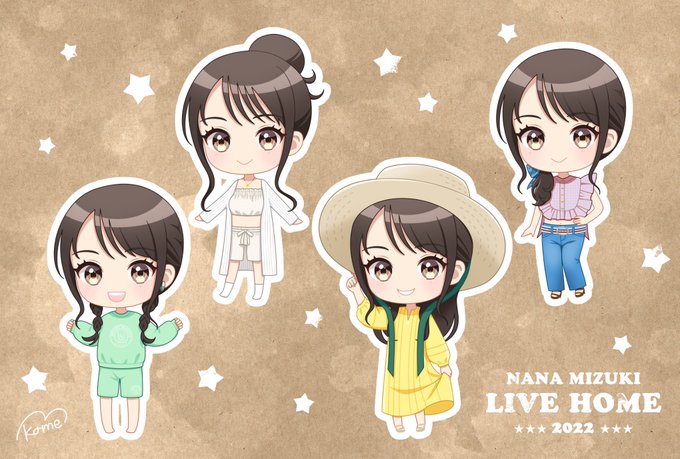 無事帰宅しました〜🏡 LIVE HOMEの開催日に描いたイラストをまとめました( ˊᵕˋ* ) 新作含め過去アルバム、シングルの特典の服を着て、各地の名所&名物を楽しむ旅をしている! というコンセプトで描きましたー!🖌 #水樹奈々 #LIVE_HOME