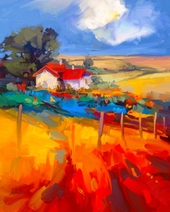 This is my painting "Gone Are The Dark Clouds". The original is for sale (please DM me if interested!) and you can also find very nice prints of it here: fineartamerica.com/featured/gone-… #art #painting #arte #artprints #ArtistOnTwitter #landscape #trees #cypress #houses #spring