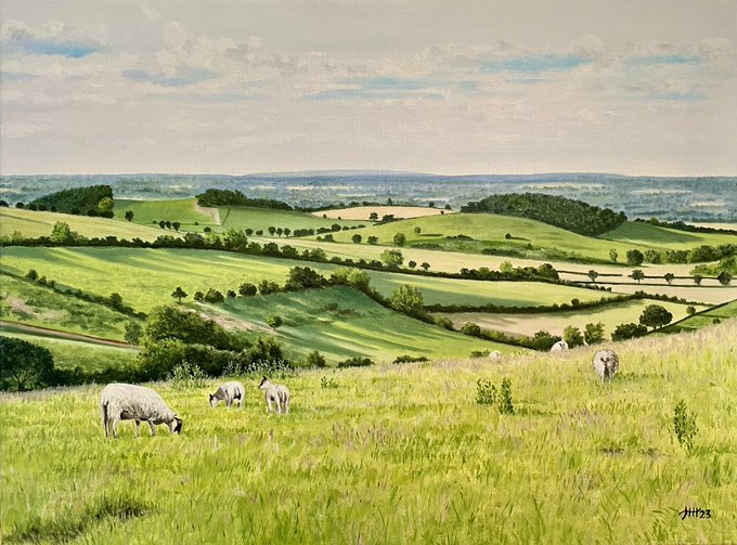 Finished 🎨 My painting of Shropshire hills. Inspired by my holiday in England last May 😊 #Shropshire #ShropshireHills #England #landscape #oilpainting #art #artistsontwitter