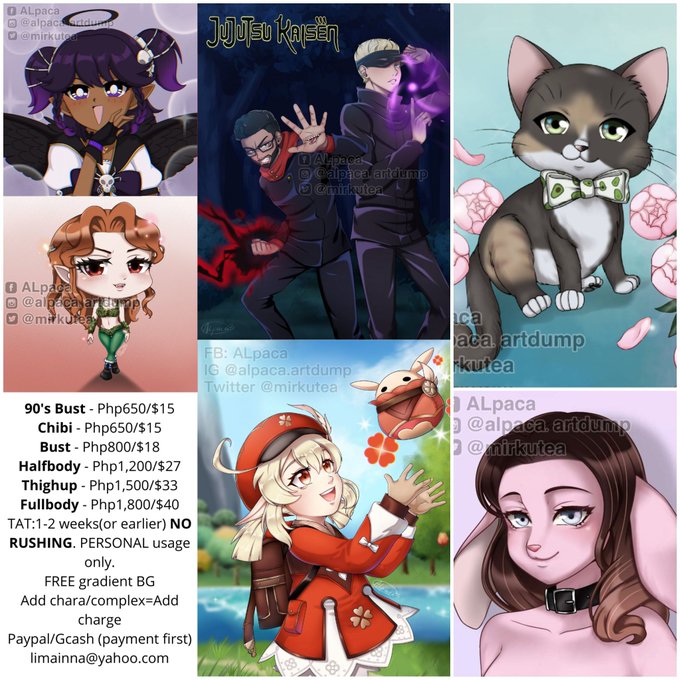 Hi I'm ALpaca and I draw anime style art starting only at $15 DM me if interested thank you #animetwt #arttwt #artph #90sanimepic #90sart #90sanime #chibi #JJK #JujutsuKaisen #Castlevania #Lenore #GenshinImpact #genshintwt #genshinimpactfanart #klee #furry #pet #fursona #cat